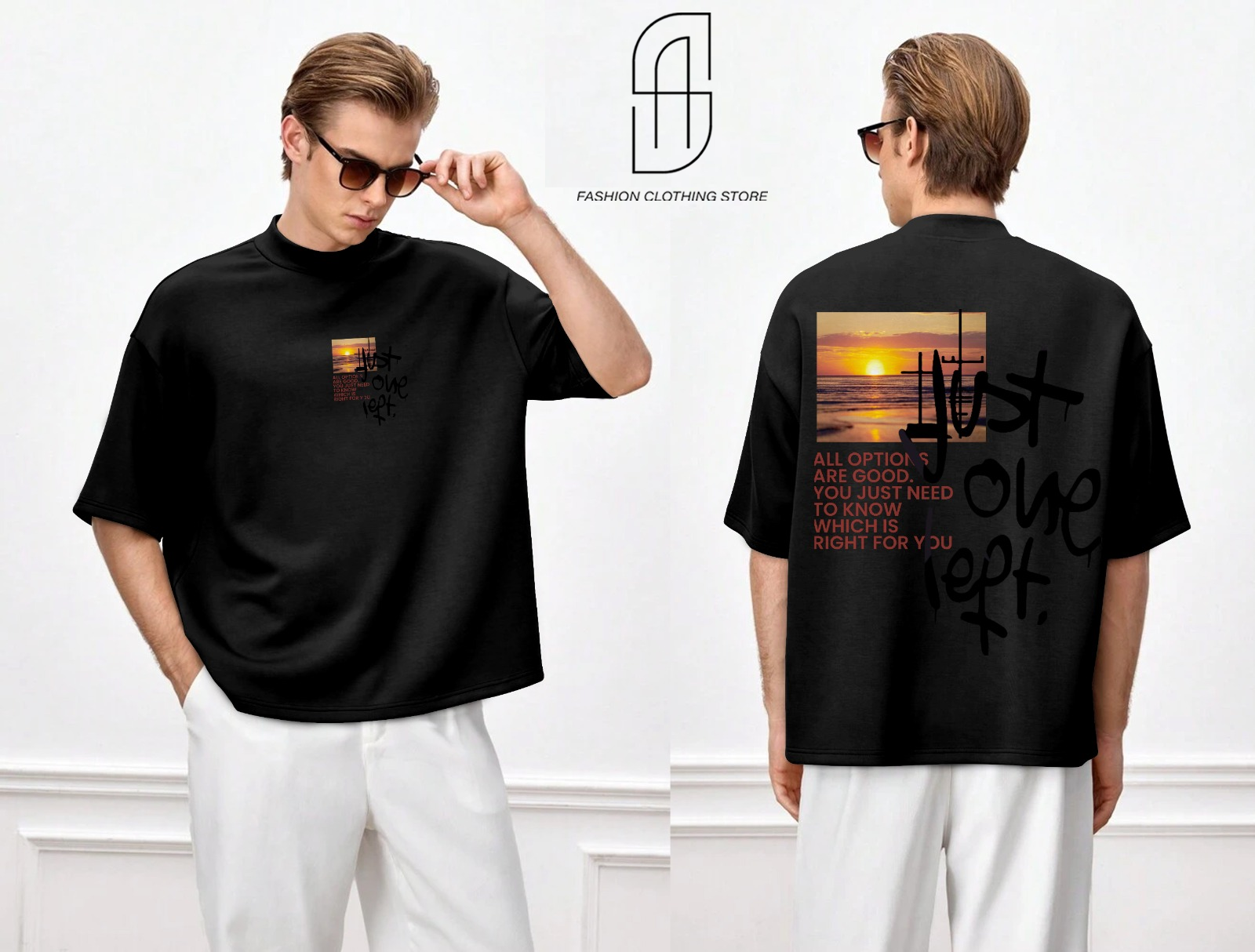 - pre { white-space: pre-wrap; }Step 1:- Suitable for men and women- Clothing material: FleeceStep 2:- Unisex- Couple & Family Sets- T-ShirtsStep 3:• High quality 210 GSM fleece material for comfort.• Unisex black t-shirt suitable for men and women.• Over size LA design for a trendy look.• Drop shoulder style for a relaxed and stylish fit.